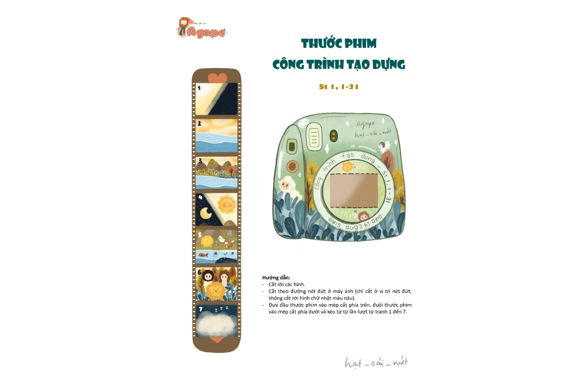- Đưa đầu thước phim vào mép cắt phía trên, đuôi thước phim vào mép cắt phía dưới và kéo từ từ lần lượt từ tranh 1 đến 7.